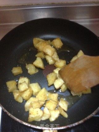 1. 加入糖浆:将炸好的苹果块放入糖浆中,快速翻动,使苹果块均匀裹上糖浆。